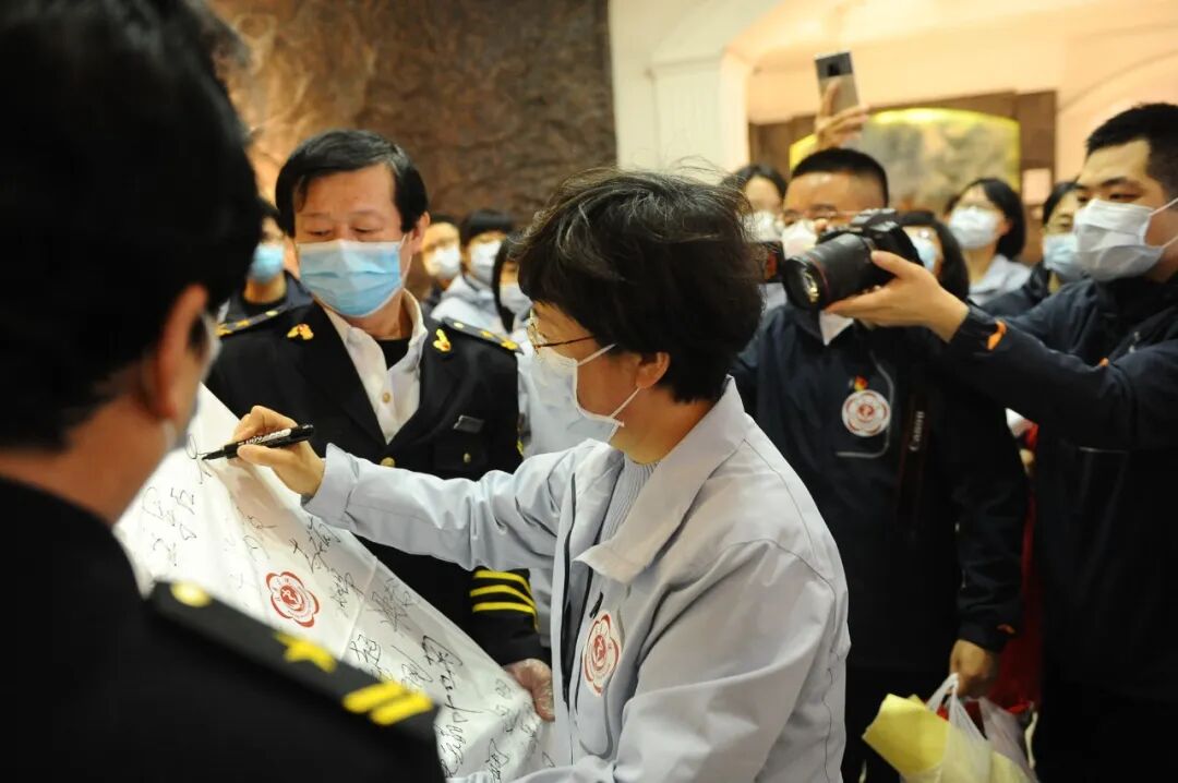 参观结束后,他们还要回到自己的“战场”。他们可能是父母,是子女,但他们更是肩负使命和责任的国家医疗队员,他们逆行而上,选择了坚守和担当,在疫情和群众之间筑起了一道钢铁长城。